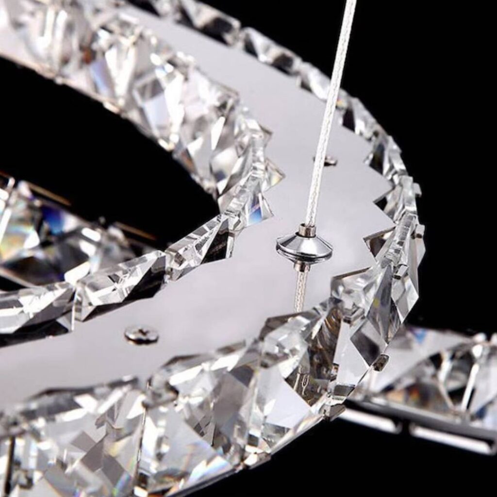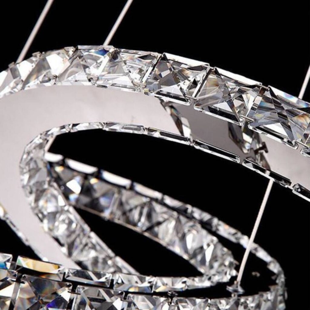O lustre LED moderno com cristais de vidro e anéis entrelaçados é mais que uma luminária — é uma peça de design que transforma qualquer espaço em um ambiente de luxo e conforto.